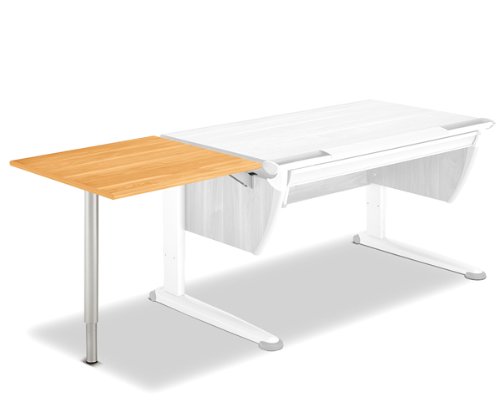 Plateau complémentaire latéral suspendu directement au côté du bureau par le biais de deux supports. Il peut être apposé au choix sur le côté gauche ou le côté droit. Il est équipé d'un pied support pour une stabilisation en toute sécurité. Système Comfort: Avec le réglage en hauteur Comfort, il suffit de tirer pour régler la hauteur de la table à la taille de l'utilisateur. Sécurité enfant brevetée. Pour hauteurs de table de 53 cm à 82 cm.
