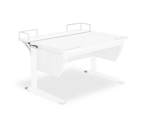 Plateau complémentaire arrière suspendu directement au piètement par le biais de deux supports. Deux serre-livres revêtus couleur aluminium veillent à ce que rien ne tombe sur les côtés.