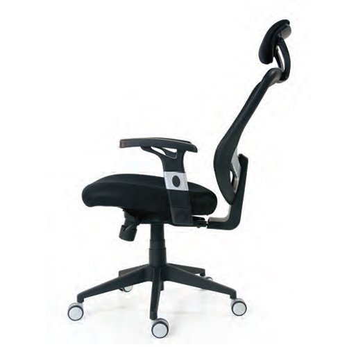 Chaise ergonomique, sie'ge rembourre', appuie-tête et accoudoirs re'glables, anti-choc me'canisme, dossier en maille. STRUCTURE: nylon noir avec roues en caoutchouc. Accoudoirs en nylon noir et argentCouleur: NoirCode Interne: P11121
