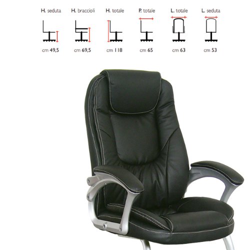 Chaise visiteur avec accoudoirs de'rapage,rembourre' et recouvert de PVC et PU combine's.Accoudoirs ABS et argent de me'taux de base.Couleur: NoirPack de 2Dimensions: H.assise 49,5 cm H.accoudoirs 69,5 cm H.Total: 118 cmP. Total de 65 cmL. Total 63 cmL. Sie'ge 53 cmCode Interne: P16828