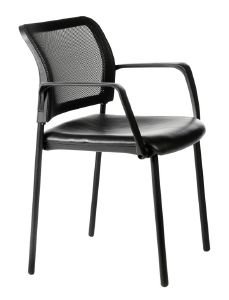 Chaise 4 pieds - Assise cuir - Patins en polypropylène - Empilable - Accoudoirs noir - Revêtement dossier : filet - Assise : L 48 cm X P 49 cm x H 50 cm