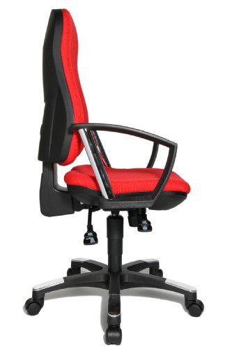 - Description du produit: Réglage progressif en hauteur par vérin à gaz (testé LGA); Haut dossier enveloppant avec soutien lombaire intégré, réglable en hauteur; Assise spéciale de galbe anatomique pour un soutien optimal du bassin; Mécanisme point synchrone, réglable individuellement en fonction du poids corporel, blocable en plusieurs positions; Piètement noir en polyamide et fibre de verre avec inserts aluminium équipé de roulettes doubles de sécurité freinées pour moquettes; Accoudoirs fixes "A1" inclus; Revêtement rouge 100% polypropylène; certificat GS