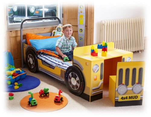 - Description du produit: Ce lit enfant en forme de 4x4 est en MDF solide et possède un bureau et une chaise intégrés au pied. Votre petit pilote pourra jouer pendant des heures tout en disposant d'un endroit très pratique pour faire ses devoirs. A l'heure du coucher, il adorera s'endormir en rêvant de sa prochaine aventure.